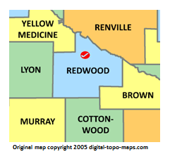 Thumbnail for version as of 10:33, 7 November 2018241 × 226 (22 KB)Bethcottam (talk | contribs)Map courtesy of [https://www.digital-topo-maps.com/county-map/minnesota.shtml]. Copyright 2005.<br> Category:Minnesota Maps Category:Redwood County, Minnesota