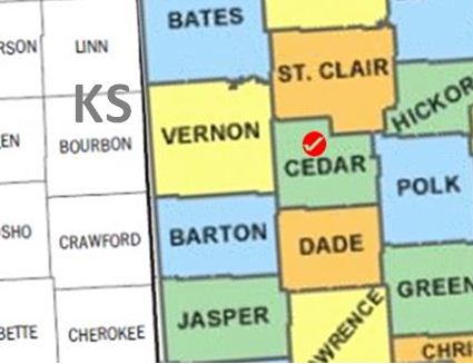 Thumbnail for version as of 07:07, 20 March 2014425 × 327 (29 KB)Wyzer17 (talk | contribs)Clickable map for Ceder County, Missouri