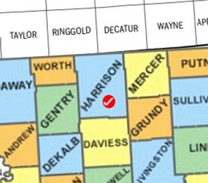 | current | ★ Approved revision 06:01, 10 March 2014 | 296 × 261 (23 KB) | Wyzer17 (talk | contribs) | Clickable County map for Harrison County Missouri |