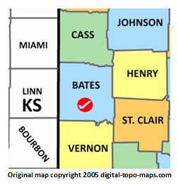 Thumbnail for version as of 16:54, 20 November 2018252 × 262 (31 KB)Bethcottam (talk | contribs)Map courtesy of [https://www.digital-topo-maps.com/county-map/missouri.shtml]. Copyright 2005.<br> Category:Missouri Maps Category:Bates County, Missouri