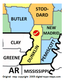 Thumbnail for version as of 12:03, 27 November 2018221 × 276 (47 KB)Bethcottam (talk | contribs)Map courtesy of [https://www.digital-topo-maps.com/county-map/missouri.shtml]. Copyright 2005.<br> Category:Missouri Maps Category:Dunklin County, Missouri