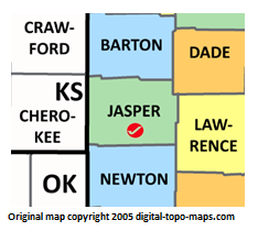 | current | ★ Approved revision 17:32, 28 November 2018 | 234 × 210 (24 KB) | Bethcottam (talk | contribs) | Map courtesy of [https://www.digital-topo-maps.com/county-map/missouri.shtml]. Copyright 2005.<br> Category:Missouri Maps Category:Jasper County, Missouri |