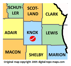 | current | ★ Approved revision 09:03, 29 November 2018 | 244 × 226 (29 KB) | Bethcottam (talk | contribs) | Map courtesy of [https://www.digital-topo-maps.com/county-map/missouri.shtml]. Copyright 2005.<br> Category:Missouri Maps Category:Knox County, Missouri |