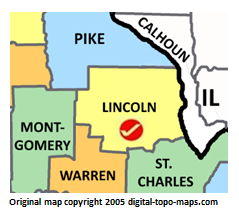 Thumbnail for version as of 10:10, 29 November 2018239 × 215 (33 KB)Bethcottam (talk | contribs)Map courtesy of [https://www.digital-topo-maps.com/county-map/missouri.shtml]. Copyright 2005.<br> Category:Missouri Maps Category:Lincoln County, Missouri