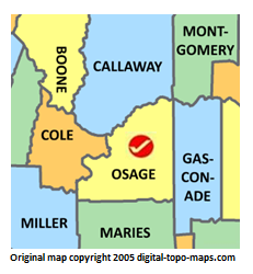 Thumbnail for version as of 16:32, 30 November 2018231 × 250 (35 KB)Bethcottam (talk | contribs)Map courtesy of [https://www.digital-topo-maps.com/county-map/missouri.shtml]. Copyright 2005.<br> Category:Missouri Maps Category:Osage County, Missouri