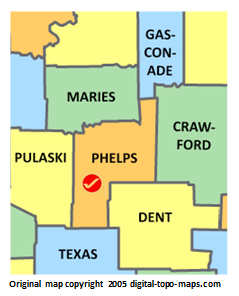 | current | ★ Approved revision 17:45, 30 November 2018 | 239 × 296 (32 KB) | Bethcottam (talk | contribs) | Map courtesy of [https://www.digital-topo-maps.com/county-map/missouri.shtml]. Copyright 2005.<br> Category:Missouri Maps Category:Phelps County, Missouri |