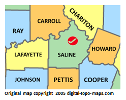 | current | ★ Approved revision 19:22, 1 December 2018 | 248 × 197 (30 KB) | Bethcottam (talk | contribs) | Map courtesy of [https://www.digital-topo-maps.com/county-map/missouri.shtml]. Copyright 2005.<br> Category:Missouri Maps Category:Saline County, Missouri |