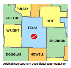 | current | ★ Approved revision 11:36, 4 December 2018 | 230 × 223 (23 KB) | Bethcottam (talk | contribs) | Map courtesy of [https://www.digital-topo-maps.com/county-map/missouri.shtml]. Copyright 2005.<br> Category:Missouri Maps Category:Texas County, Missouri |