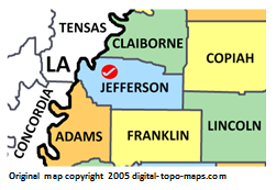 | current | ★ Approved revision 10:13, 26 April 2018 | 251 × 173 (28 KB) | Djheaven (talk | contribs) | Map courtesy of [https://www.digital-topo-maps.com/county-map/mississippi.shtml Digital-Topo-Maps.com]. Copyright 2005.<br> Category:Mississippi Maps Category:Jefferson County, Mississippi |
