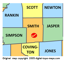| current | ★ Approved revision 09:57, 26 April 2018 | 227 × 214 (24 KB) | Djheaven (talk | contribs) | Map courtesy of [https://www.digital-topo-maps.com/county-map/mississippi.shtml Digital-Topo-Maps.com]. Copyright 2005.<br> Category:Mississippi Maps Category:Smith County, Mississippi |