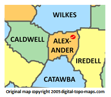 | current | ★ Approved revision 09:45, 24 April 2018 | 227 × 200 (26 KB) | Djheaven (talk | contribs) | Map courtesy of [https://www.digital-topo-maps.com/county-map/north-carolina.shtml Digital-Topo-Maps.com]. Copyright 2005.<br> Category:North Carolina Maps Category:Alexander County, North Carolina |