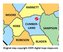 | current | ★ Approved revision 09:35, 24 April 2018 | 217 × 180 (26 KB) | Djheaven (talk | contribs) | Map courtesy of [https://www.digital-topo-maps.com/county-map/north-carolina.shtml Digital-Topo-Maps.com]. Copyright 2005.<br> Category:North Carolina Maps Category:Cumberland County, North Carolina |