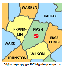 | current | ★ Approved revision 09:01, 24 April 2018 | 216 × 222 (32 KB) | Djheaven (talk | contribs) | Map courtesy of [https://www.digital-topo-maps.com/county-map/north-carolina.shtml Digital-Topo-Maps.com]. Copyright 2005.<br> Category:North Carolina Maps Category:Nash County, North Carolina |