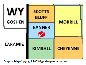 | current | ★ Approved revision 17:04, 10 April 2018 | 284 × 216 (25 KB) | Bethcottam (talk | contribs) | Map courtesy of [https://www.digital-topo-maps.com/county-map/nebraska.shtml]. Copyright 2005.<br> Category:Nebraska Maps Category:Banner County, Nebraska |