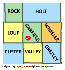 | current | ★ Approved revision 10:37, 14 April 2018 | 265 × 288 (30 KB) | Bethcottam (talk | contribs) | Map courtesy of [https://www.digital-topo-maps.com/county-map/nebraska.shtml]. Copyright 2005.<br> Category:Nebraska Maps Category:Garfield County, Nebraska |