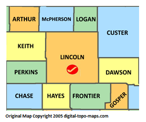 | current | ★ Approved revision 16:30, 16 April 2018 | 295 × 246 (27 KB) | Bethcottam (talk | contribs) | Map courtesy of [https://www.digital-topo-maps.com/county-map/nebraska.shtml]. Copyright 2005.<br> Category:Nebraska Maps Category:Lincoln County, Nebraska |