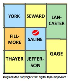 | current | ★ Approved revision 07:59, 1 May 2018 | 234 × 267 (24 KB) | Bethcottam (talk | contribs) | Map courtesy of [https://www.digital-topo-maps.com/county-map/nebraska.shtml]. Copyright 2005.<br> Category:Nebraska Maps Category:Saline County, Nebraska |