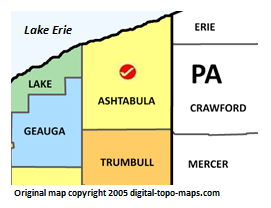 | current | ★ Approved revision 16:39, 11 November 2018 | 271 × 208 (18 KB) | Bethcottam (talk | contribs) | Map courtesy of [https://www.digital-topo-maps.com/county-map/ohio.shtml]. Copyright 2005.<br> Category:Ohio Maps Category:Ashtabula County, Ohio |