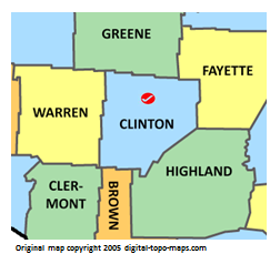 | current | ★ Approved revision 10:29, 12 November 2018 | 252 × 238 (29 KB) | Bethcottam (talk | contribs) | Map courtesy of [https://www.digital-topo-maps.com/county-map/ohio.shtml]. Copyright 2005.<br> Category:Ohio Maps Category:Clinton County, Ohio |