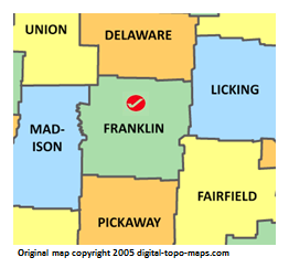 | current | ★ Approved revision 20:08, 12 November 2018 | 262 × 243 (27 KB) | Bethcottam (talk | contribs) | Map courtesy of [https://www.digital-topo-maps.com/county-map/ohio.shtml]. Copyright 2005.<br> Category:Ohio Maps Category:Franklin County, Ohio |