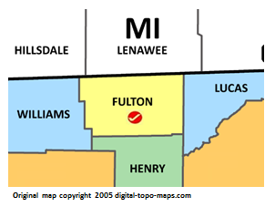 | current | ★ Approved revision 20:17, 12 November 2018 | 302 × 227 (20 KB) | Bethcottam (talk | contribs) | Map courtesy of [https://www.digital-topo-maps.com/county-map/ohio.shtml]. Copyright 2005.<br> Category:Ohio Maps Category:Fulton County, Ohio |