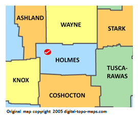 | current | ★ Approved revision 14:51, 14 November 2018 | 270 × 231 (24 KB) | Bethcottam (talk | contribs) | Map courtesy of [https://www.digital-topo-maps.com/county-map/ohio.shtml]. Copyright 2005.<br> Category:Ohio Maps Category:Holmes County, Ohio |