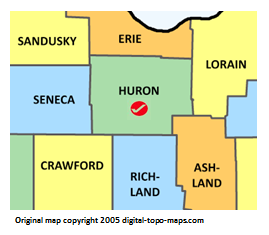 | current | ★ Approved revision 18:47, 14 November 2018 | 269 × 235 (24 KB) | Bethcottam (talk | contribs) | Map courtesy of [https://www.digital-topo-maps.com/county-map/ohio.shtml]. Copyright 2005.<br> Category:Ohio Maps Category:Huron County, Ohio |