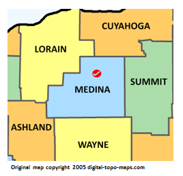 | current | ★ Approved revision 19:43, 15 November 2018 | 268 × 258 (23 KB) | Bethcottam (talk | contribs) | Map courtesy of [https://www.digital-topo-maps.com/county-map/ohio.shtml]. Copyright 2005.<br> Category:Ohio Maps Category:Medina County, Ohio |