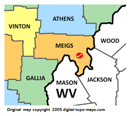 | current | ★ Approved revision 19:53, 15 November 2018 | 262 × 231 (29 KB) | Bethcottam (talk | contribs) | Map courtesy of [https://www.digital-topo-maps.com/county-map/ohio.shtml]. Copyright 2005.<br> Category:Ohio Maps Category:Meigs County, Ohio |