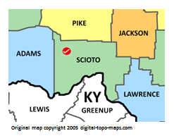 | current | ★ Approved revision 22:08, 18 November 2018 | 247 × 196 (22 KB) | Bethcottam (talk | contribs) | Map courtesy of [https://www.digital-topo-maps.com/county-map/ohio.shtml]. Copyright 2005.<br> Category:Ohio Maps Category:Scioto County, Ohio |