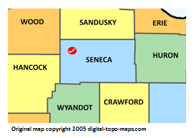 | current | ★ Approved revision 22:19, 18 November 2018 | 272 × 194 (17 KB) | Bethcottam (talk | contribs) | Map courtesy of [https://www.digital-topo-maps.com/county-map/ohio.shtml]. Copyright 2005.<br> Category:Ohio Maps Category:Seneca County, Ohio |