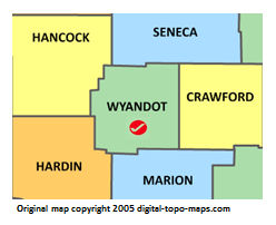 | current | ★ Approved revision 13:45, 19 November 2018 | 248 × 202 (16 KB) | Bethcottam (talk | contribs) | Map courtesy of [https://www.digital-topo-maps.com/county-map/ohio.shtml]. Copyright 2005.<br> Category:Ohio Maps Category:Wyandot County, Ohio |