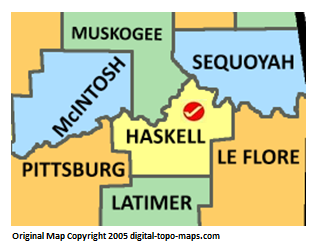 | current | ★ Approved revision 11:32, 3 April 2018 | 317 × 248 (46 KB) | Bethcottam (talk | contribs) | Map courtesy of [Oklahoma: https://www.digital-topo-maps.com/county-map/oklahoma.shtml]. Copyright 2005.<br> Category:Oklahoma Maps Category:Haskell County, Oklahoma |
