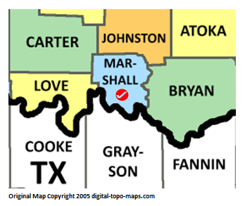 | current | ★ Approved revision 11:21, 4 April 2018 | 348 × 293 (49 KB) | Bethcottam (talk | contribs) | Map courtesy of [Oklahoma: https://www.digital-topo-maps.com/county-map/oklahoma.shtml]. Copyright 2005.<br> Category:Oklahoma Maps Category:Marshall County, Oklahoma |