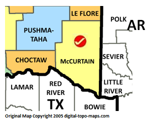 | current | ★ Approved revision 13:33, 4 April 2018 | 299 × 246 (33 KB) | Bethcottam (talk | contribs) | Map courtesy of [Oklahoma: https://www.digital-topo-maps.com/county-map/oklahoma.shtml]. Copyright 2005.<br> Category:Oklahoma Maps Category:McCurtain County, Oklahoma |