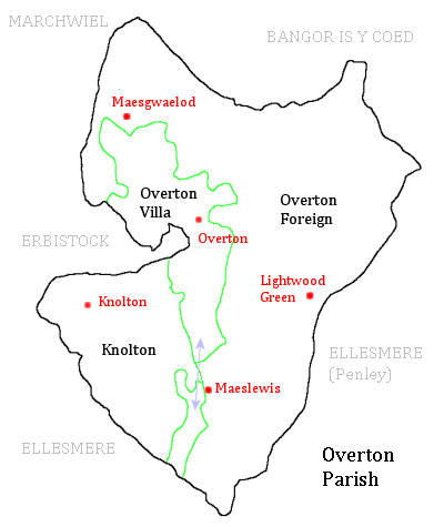 A map of the parish of Overton, Flintshire, Wales in the 1800s.