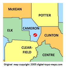 | current | ★ Approved revision 08:56, 11 April 2018 | 219 × 227 (22 KB) | Djheaven (talk | contribs) | Map courtesy of [https://www.digital-topo-maps.com/county-map/pennsylvania.shtml Digital-Topo-Maps.com]. Copyright 2005.<br> Category:Pennsulvania Maps Category:Cameron County, Pennsylvania |
