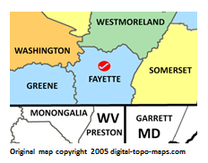| current | ★ Approved revision 08:52, 11 April 2018 | 232 × 182 (24 KB) | Djheaven (talk | contribs) | Map courtesy of [https://www.digital-topo-maps.com/county-map/pennsylvania.shtml Digital-Topo-Maps.com]. Copyright 2005.<br> Category:Pennsulvania Maps Category:Fayette County, Pennsylvania |