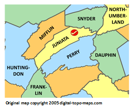 | current | ★ Approved revision 08:40, 11 April 2018 | 261 × 215 (39 KB) | Djheaven (talk | contribs) | Map courtesy of [https://www.digital-topo-maps.com/county-map/pennsylvania.shtml Digital-Topo-Maps.com]. Copyright 2005.<br> Category:Pennsulvania Maps Category:Juniata County, Pennsylvania |