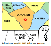 | current | ★ Approved revision 08:32, 11 April 2018 | 210 × 187 (25 KB) | Djheaven (talk | contribs) | Map courtesy of [https://www.digital-topo-maps.com/county-map/pennsylvania.shtml Digital-Topo-Maps.com]. Copyright 2005.<br> Category:Pennsulvania Maps Category:Lacaster County, Pennsylvania |