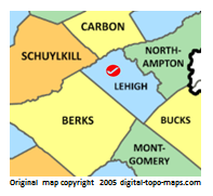 | current | ★ Approved revision 08:18, 11 April 2018 | 197 × 181 (26 KB) | Djheaven (talk | contribs) | Map courtesy of [https://www.digital-topo-maps.com/county-map/pennsylvania.shtml Digital-Topo-Maps.com]. Copyright 2005.<br> Category:Pennsulvania Maps Category:Lehigh County, Pennsylvania |