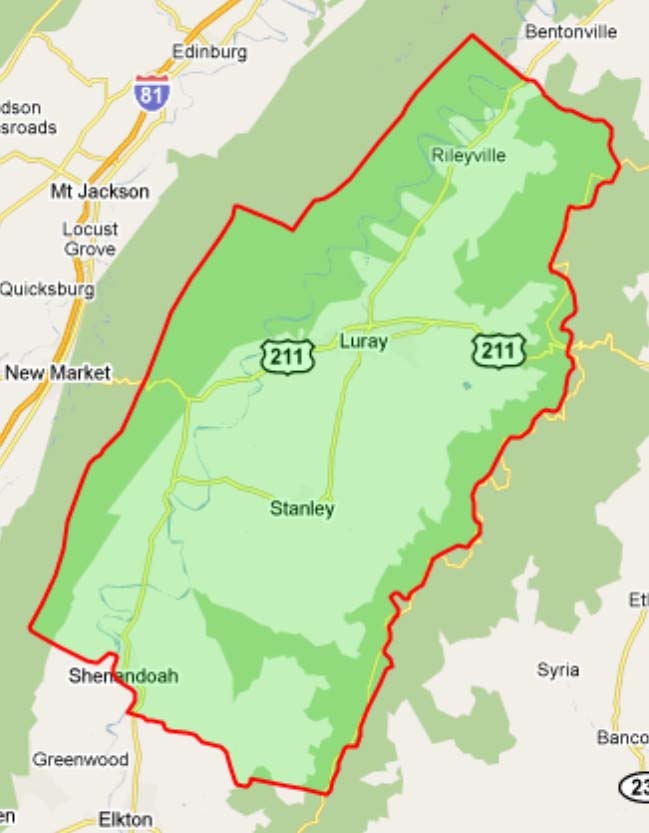 TITLE: Page County Boundary Map DATE: RIGHTS STATUS: Has the right to distribute DESCRIPTION: http://maps.huge.info/county.htm. Used with permission of John Coryat, USNaviguide LLC. WIKI: FamilySearch Wiki