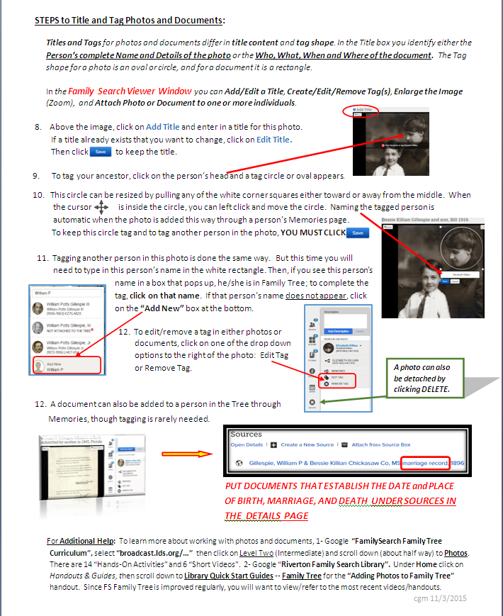 | current | ★ Approved revision 17:02, 5 November 2015 | 711 × 869 (210 KB) | Cgmills (talk | contribs) | A help guide, featuring Step by step instructions and associated images, to putting photos and documents as memories in Family Tree p2.. | |