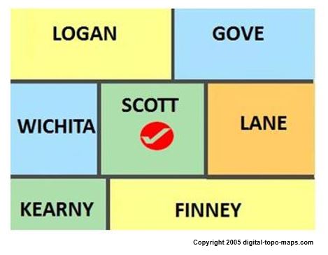 | current | ★ Approved revision 09:44, 13 September 2017 | 469 × 366 (26 KB) | Amberannelarsen (talk | contribs) | Map courtesy of [https://www.digital-topo-maps.com/county-map/kansas.shtml/ Digital-Topo-Maps.com]. Copyright 2005. Category:Kansas Maps Category: Scott County, Kansas |