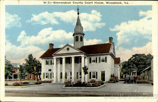 TITLE: Shenandoah County Courthouse DATE: RIGHTS STATUS: Has the right to distribute DESCRIPTION: "Shenandoah County Court House Postcard" Photo courtesy of http://www.cardcow.com/63768/shenandoah-county-court-house-woodstock-virginia/ WIKI: FamilySearch Wiki