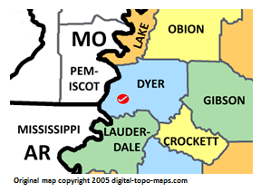 | current | ★ Approved revision 09:55, 1 December 2018 | 288 × 212 (34 KB) | Djheaven (talk | contribs) | Map courtesy of [https://www.digital-topo-maps.com/county-map/tennessee.shtml Digital-Topo-Maps.com]. Copyright 2005.<br> Category:Tennessee Maps Category:Dyer County, Tennessee |