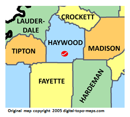 | current | ★ Approved revision 09:42, 1 December 2018 | 264 × 239 (32 KB) | Djheaven (talk | contribs) | Map courtesy of [https://www.digital-topo-maps.com/county-map/tennessee.shtml Digital-Topo-Maps.com]. Copyright 2005.<br> Category:Tennessee Maps Category:Haywood County, Tennessee |