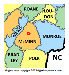 | current | ★ Approved revision 09:30, 1 December 2018 | 240 × 259 (41 KB) | Djheaven (talk | contribs) | Map courtesy of [https://www.digital-topo-maps.com/county-map/tennessee.shtml Digital-Topo-Maps.com]. Copyright 2005.<br> Category:Tennessee Maps Category:McMinn County, Tennessee |