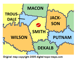 | current | ★ Approved revision 09:15, 1 December 2018 | 248 × 201 (34 KB) | Djheaven (talk | contribs) | Map courtesy of [https://www.digital-topo-maps.com/county-map/tennessee.shtml Digital-Topo-Maps.com]. Copyright 2005.<br> Category:Tennessee Maps Category:Smith County, Tennessee |