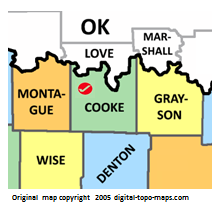 | current | ★ Approved revision 05:22, 14 June 2018 | 221 × 209 (23 KB) | Dotxinxoz (talk | contribs) | Map courtesy of [https://www.digital-topo-maps.com/county-map/Texas.shtml Digital-Topo-Maps.com]. Copyright 2005.<br> Category:Texas Maps Category:Cooke County, Texas |